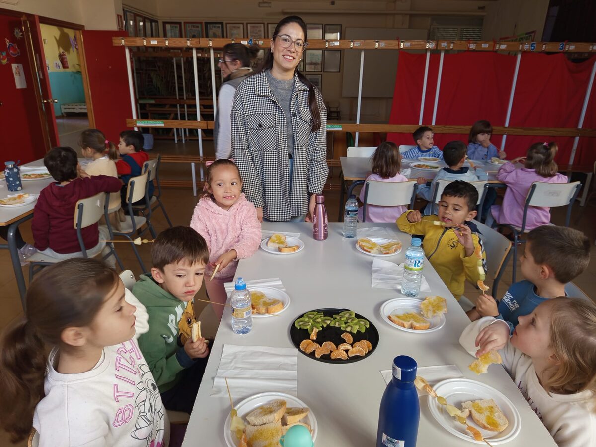 El alumnado disfruta de un desayuno saludable a base de pan de aceite y diversidad de fruta: kiwis, plátanos, mandarinas, etc. El alumnado disfruta mucho con la actividad por muy simple que parezca ya que muchos son los que no toman a diario una tostada con aceite.
